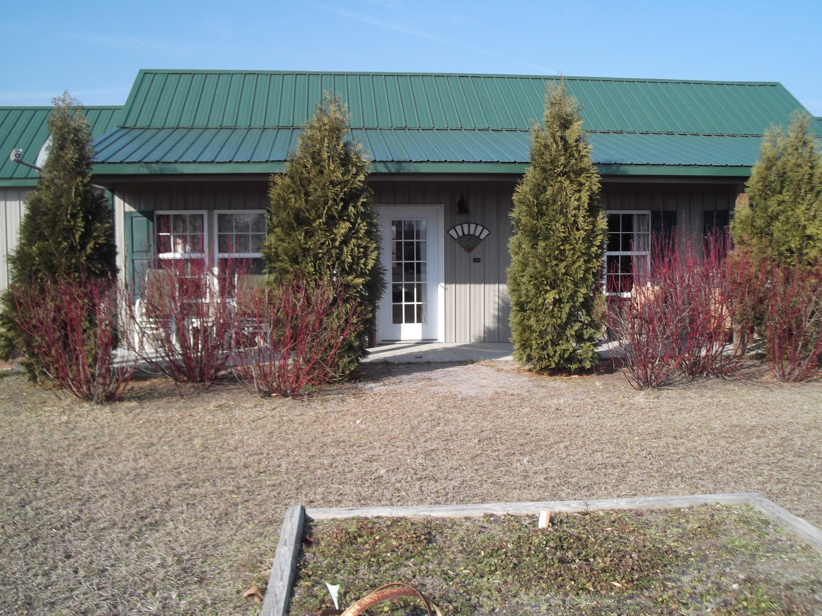 This is an outside view of the cabin. It was on a working horse farm and we could view the horses from the windows as we knitted, crocheted, and watched movies all weekend.
